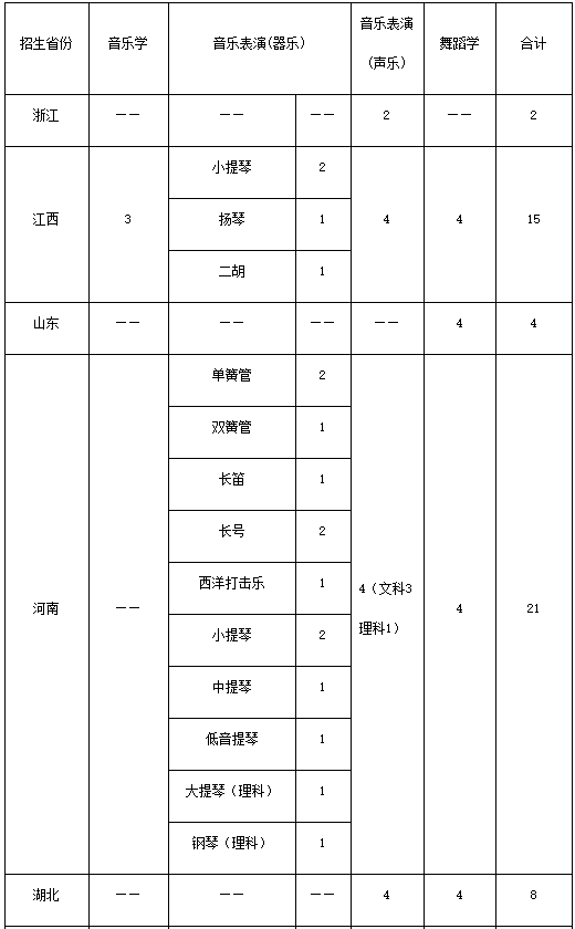 (一)我校音乐学专业招考方向为非师范、非音乐教育方向,考生专业省级统考必须包括器乐演奏钢琴科目。根据学校音乐学专业培养要求,音乐学考生专业省级统考成绩中乐理、视唱练耳单科成绩不低于此科目总分的80%。