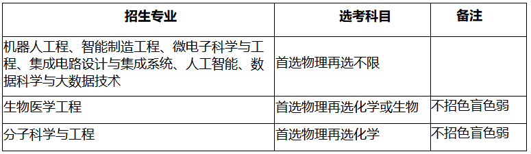 我校2023年在江苏省“631”综合评价招生计划68人。招生专业及选考科目如下: