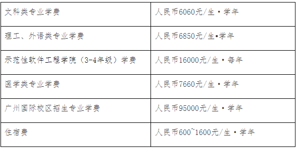 注:1. 以上所列收费标准具体以学校信息公开为准。